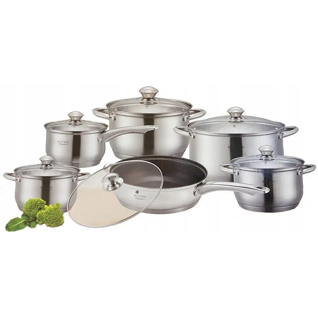 Набор из высококачественных металлических кастрюль для индукции. В набор входят 4 кастрюли разной емкости, сотейник и сковорода с тефлоновым покрытием. Каждый сосуд идет с крышкой. Посуда из высококачественной нержавеющей стали с 5-слойным индукционным дном. Все они имеют приятные на ощупь ручки. Набор отлично подходит для любой кухни.