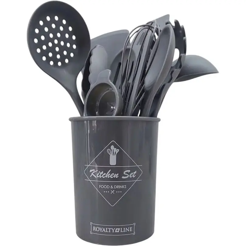 Набор лопаток Royalty Line KU15S-G - стильный кухонный набор из 15 предметов станет дополнением к любой кухне. Изготовлен из качественного жаропрочного силикона, он безопасен для использования с посудой с антипригарным покрытием, не царапает поверхность и выдерживает высокие температуры. Эргономичные ручки с петлями для подвешивания обеспечивают удобство в хранении и использовании.