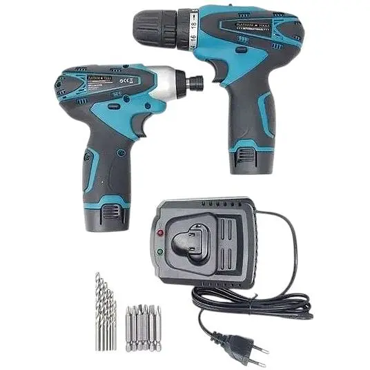 Этот набор состоит из двух аккумуляторных шуруповертов, предназначенных для закручивания/откручивания винтов и шурупов, сверления отверстий в различных конструкционных материалах (в том числе металле, дереве, пластмассе и т.п.).