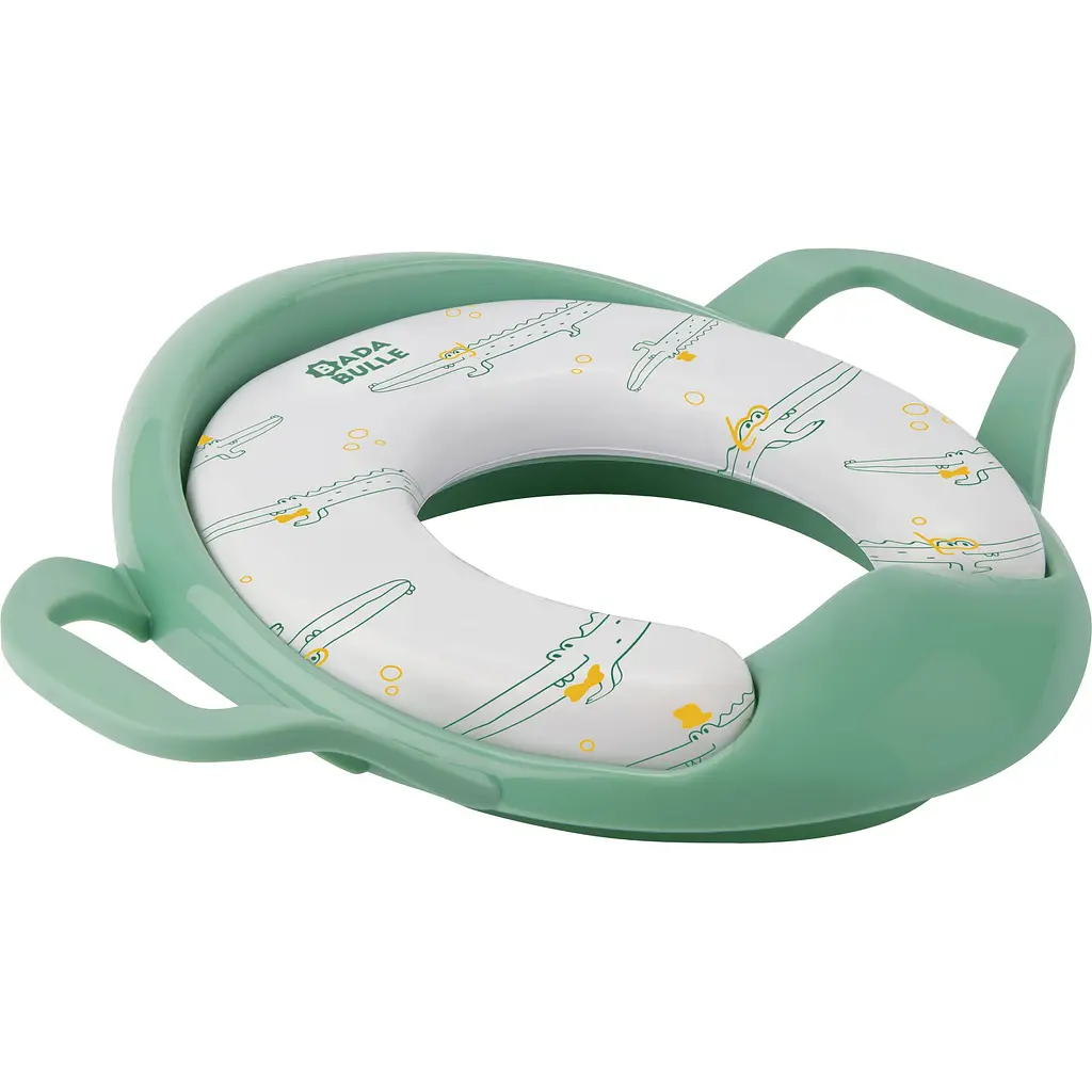 Малыши чувствуют себя спокойно благодаря возможности держаться за две гигиенические ручки с обеих сторон. Система против скольжения делает накладку на унитаз Badabulle очень стойкой. Подходит для любого унитаза! Ее легко мыть водой с мылом. Кроме того, дизайн с маленькими крокодилами поднимет настроение вашему ребенку!