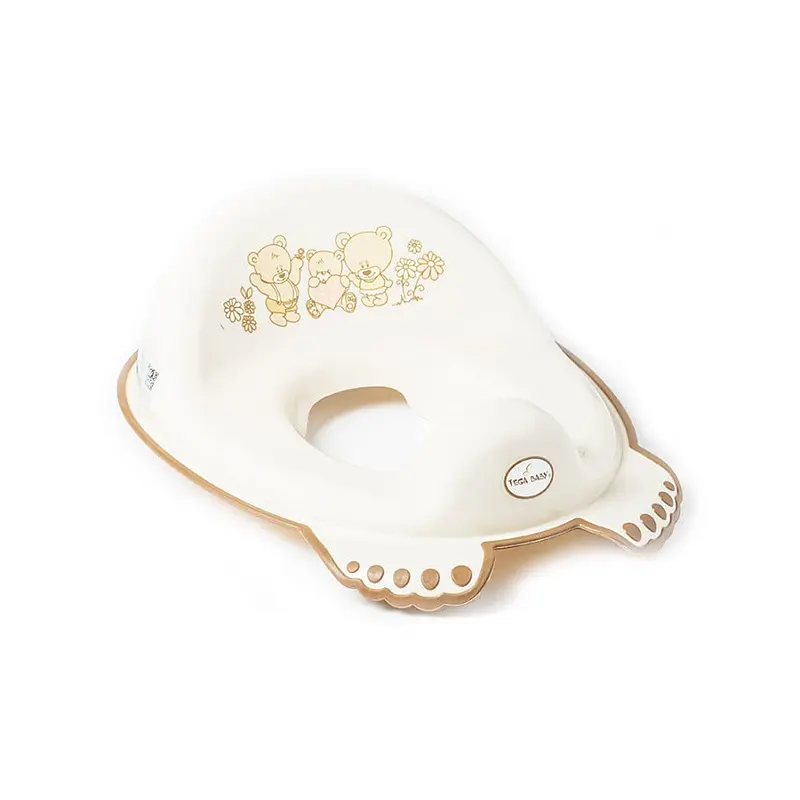 Изделие изготовлено из прочного и безопасного пластика, не содержащего вредных примесей. Приятный бежевый цвет дополнен милым принтом из серии "Мишки", нанесенный с помощью устойчивой технологии IML. Специальные антискользящие края предотвращают смещение накладки при использовании, обеспечивая стабильность. Высокий бортик в передней части надежно защищает от разбрызгивания, что позволяет поддерживать идеальную чистоту и гигиену в ванной комнате.
