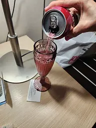 Напій яскраво-рожевого кольору, газований, з насиченим ароматом вишні, який одразу нагадує дитинство і солодку газовану воду з автомата. Смак солодкий, але не нудотний, із легкою кислинкою. Чудово освіжає в спеку або як приємне доповнення до перекусу.