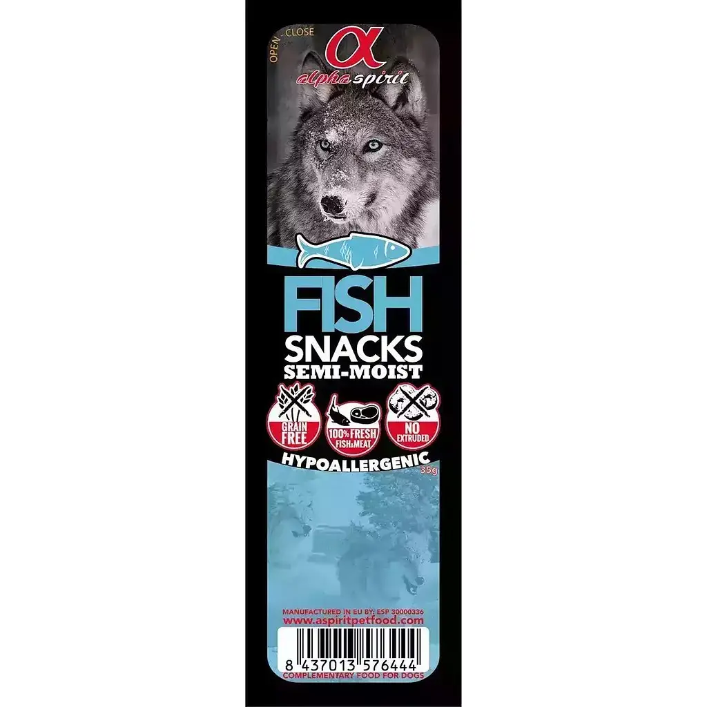 Полувлажное лакомство для собак Alpha Spirit Snacks Fish представляет собой аппетитное угощение в виде жевательных кубиков с витаминами и полезными веществами. Гипоаллергенный продукт.