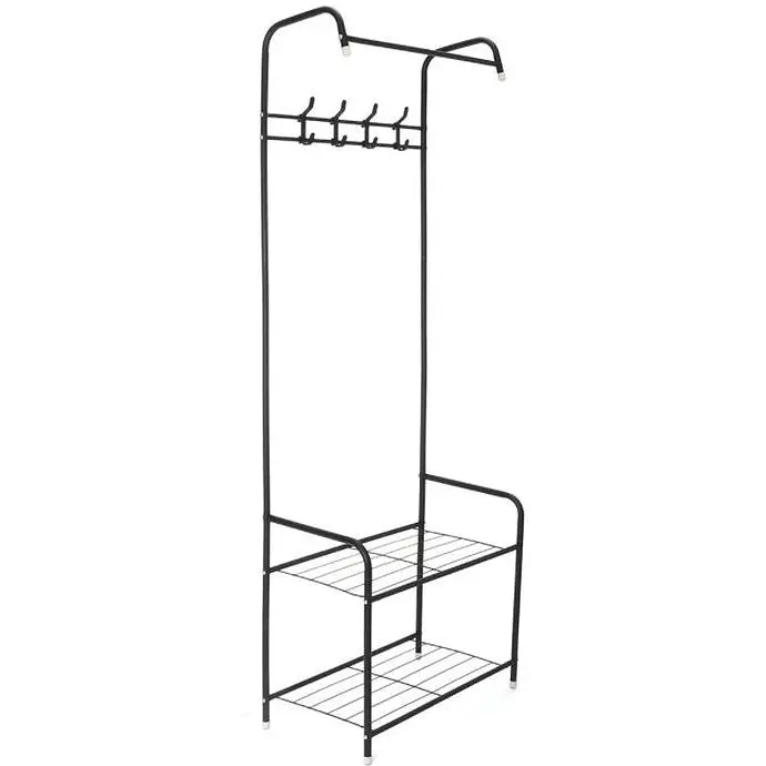 Эта вешалка обеспечивает надежную поддержку для различных типов одежды, включая пальто, куртки, платья и брюки. Она также оснащена полками для хранения обуви и аксессуаров, что позволяет максимально оптимизировать использование пространства.