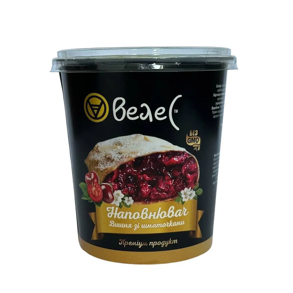 Наполнитель Вишня Велес с кусочками – это готовая к использованию начинка от бренда Велес, предназначенная для выпечки и десертов, доступная для покупки в Украине. Изготовлена из натуральных вишен (67%), сахара и стабилизаторов, имеет кисло-сладкий вкус с кусочками ягод, идеально подходит для пирогов, рулетов и пирожных. Вес 400 г удобен для небольших порций.