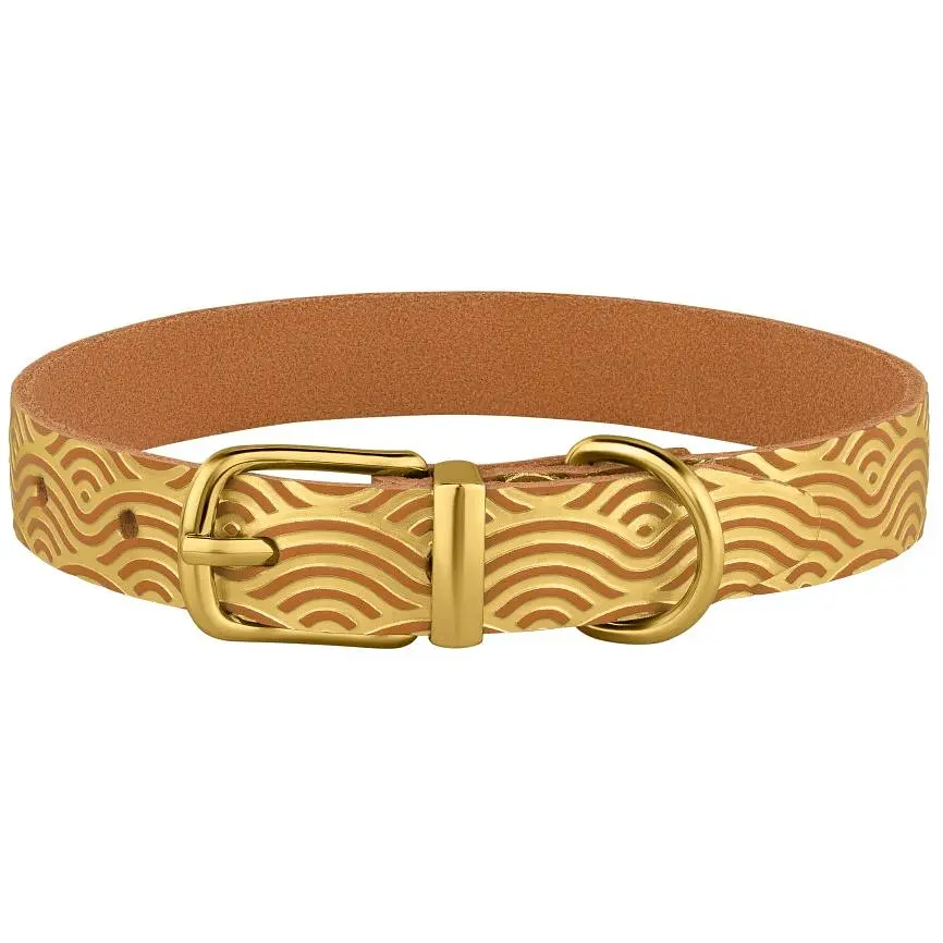 Для изготовления ошейников производитель использует высококачественную натуральную кожу с восковым покрытием, которое делает ее очень прочной и долговечной, при этом придавая ей винтажный вид. Ее главные плюсы - это пластичность, мягкость и уникальный вид. Прекрасные узоры на ошейнике были выполнены с помощью технологии тиснения. Это придает продукту уникальный вид и необычный дизайн. Ошейник доступен с золотым и серебряным тиснением. Высококачественная кожа и прочная фурнитура - залог длительной службы изделия. Фурнитура с покрытием очень износостойкая и прочная, гарантийный срок ее службы - более 20 лет.