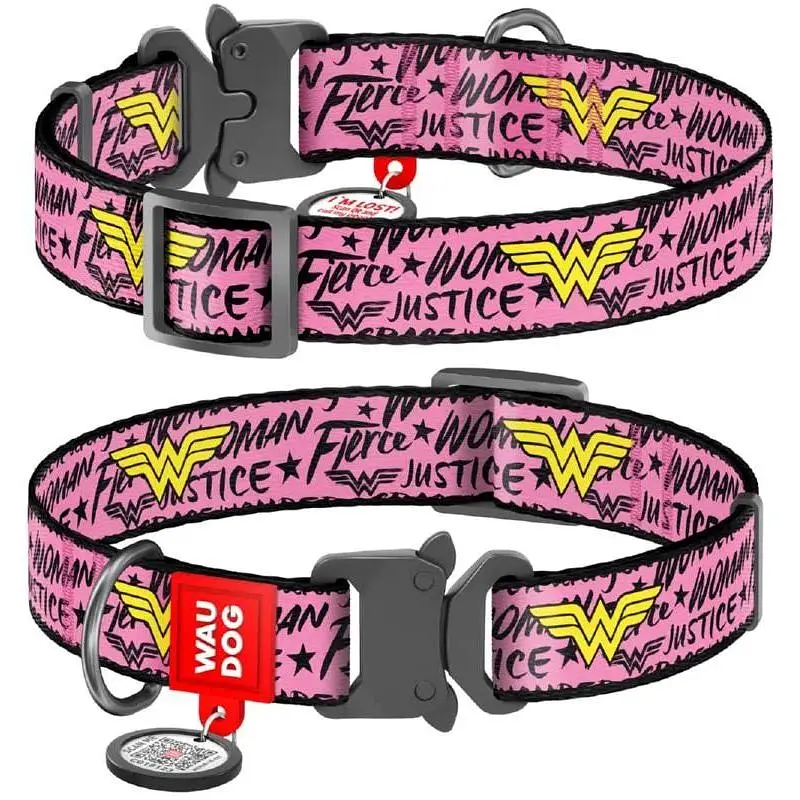 Ошейник для собак Waudog Nylon нейлоновый c QR паспортом, рисунок Чудо-женщина, металлическая пряжка-фастекс, M, Ш 20 мм, Дл 24-40 см - фото 1