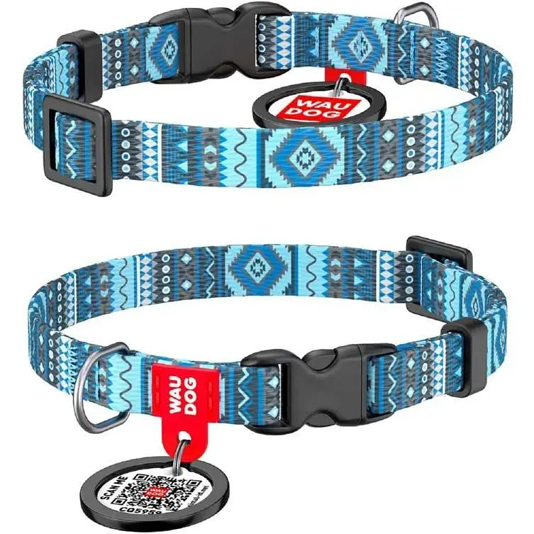 • Ошейник для собак Waudog Nylon нейлоновый c QR паспортом, рисунок Этно синий , пластиковый фастекс, XS, Ш 10 мм, Дл 20-30 см - миниатюра 1