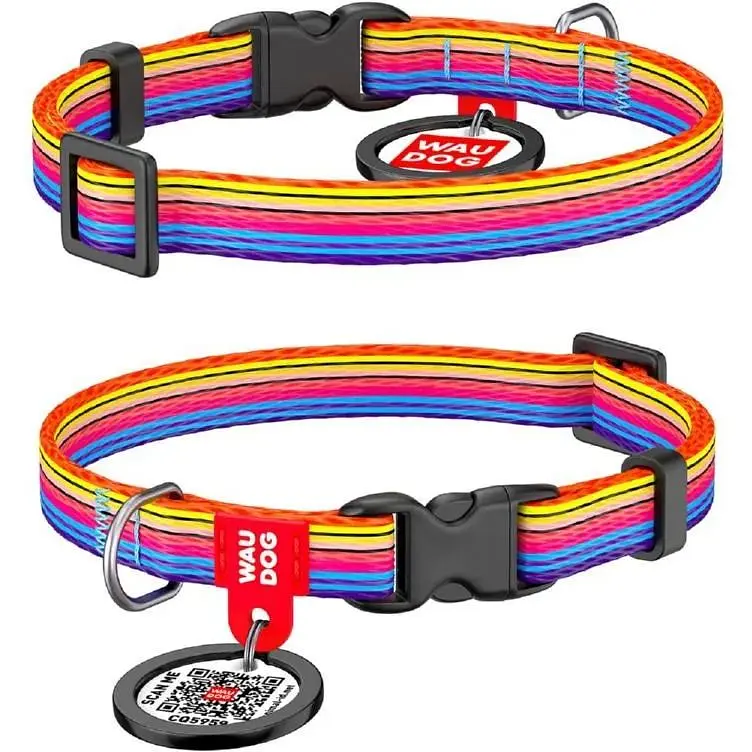 • Ошейник для собак Waudog Nylon нейлоновый c QR паспортом, рисунок Линия 1, пластиковый фастекс, XS, Ш 10 мм, Дл 20-30 см - миниатюра 1
