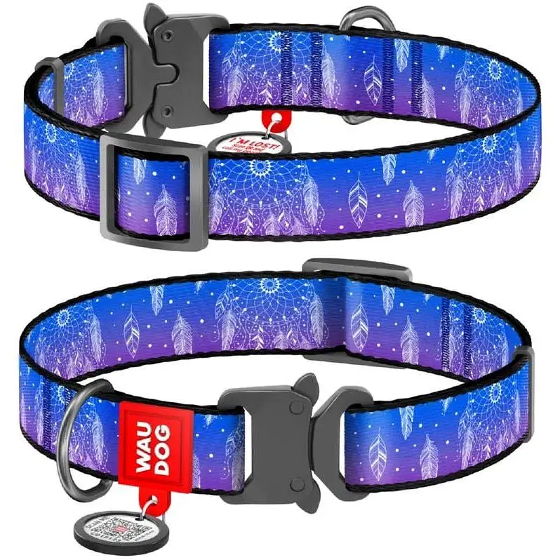 Ошейник для собак Waudog Nylon нейлоновый c QR паспортом, рисунок Ловец снов, металлическая пряжка-фастекс, XL, Ш 25 мм, Дл 35-58 см