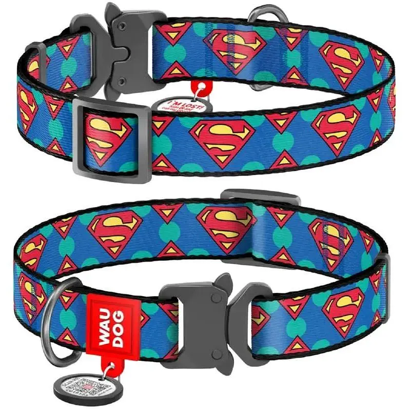 • Ошейник для собак Waudog Nylon нейлоновый c QR паспортом, рисунок Супермен Лого, металлическая пряжка-фастекс, XL, Ш 25 мм, Дл 35-58 см - миниатюра 1
