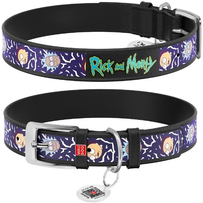 • Ошейник для собак Waudog Design кожаный с QR паспортом рисунок Год и Морти 2 S - миниатюра 1