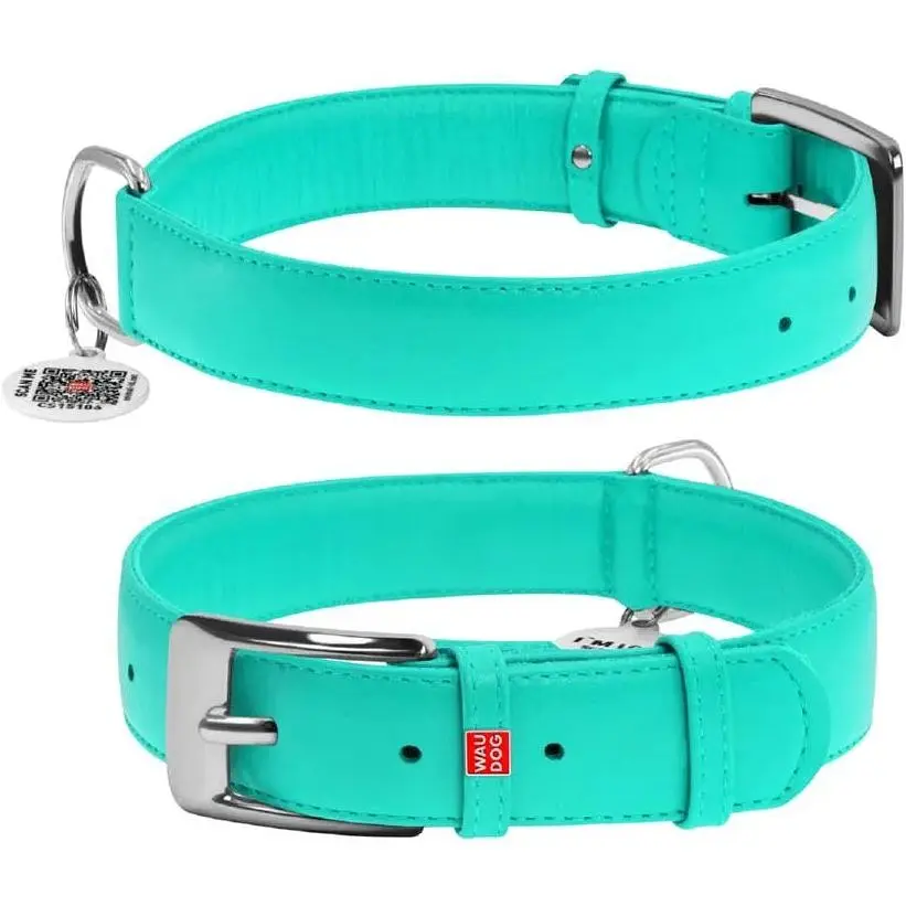 • Ошейник для собак Waudog Glamour кожаный с QR паспортом, без украшений, L, Ш 35 мм, Дл 46-60 см (2033221300008) - миниатюра 1