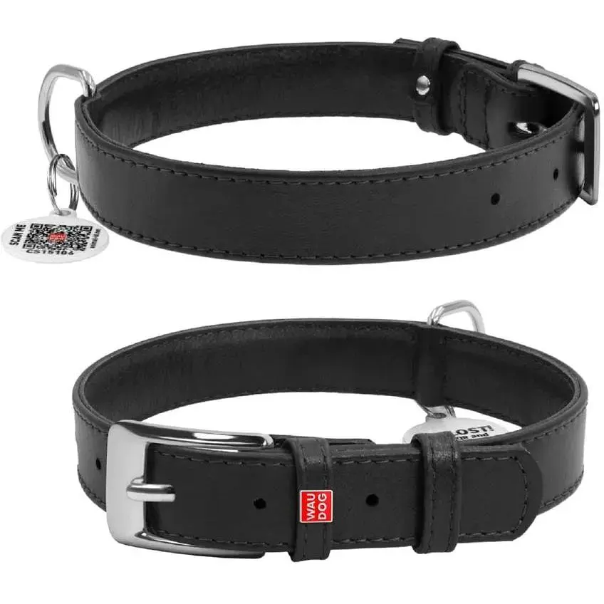 • Ошейник для собак Waudog Glamour кожаный с QR паспортом, без украшений, M, Ш 25 мм, Дл 38-49 см (4820152560896) - миниатюра 1
