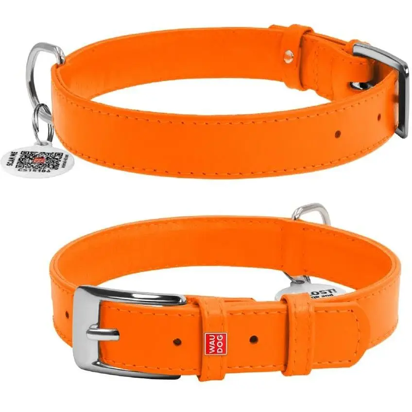• Ошейник для собак Waudog Glamour кожаный с QR паспортом, без украшений, S, Ш 20 мм, Дл 30-39 см (4820152560865) - миниатюра 1