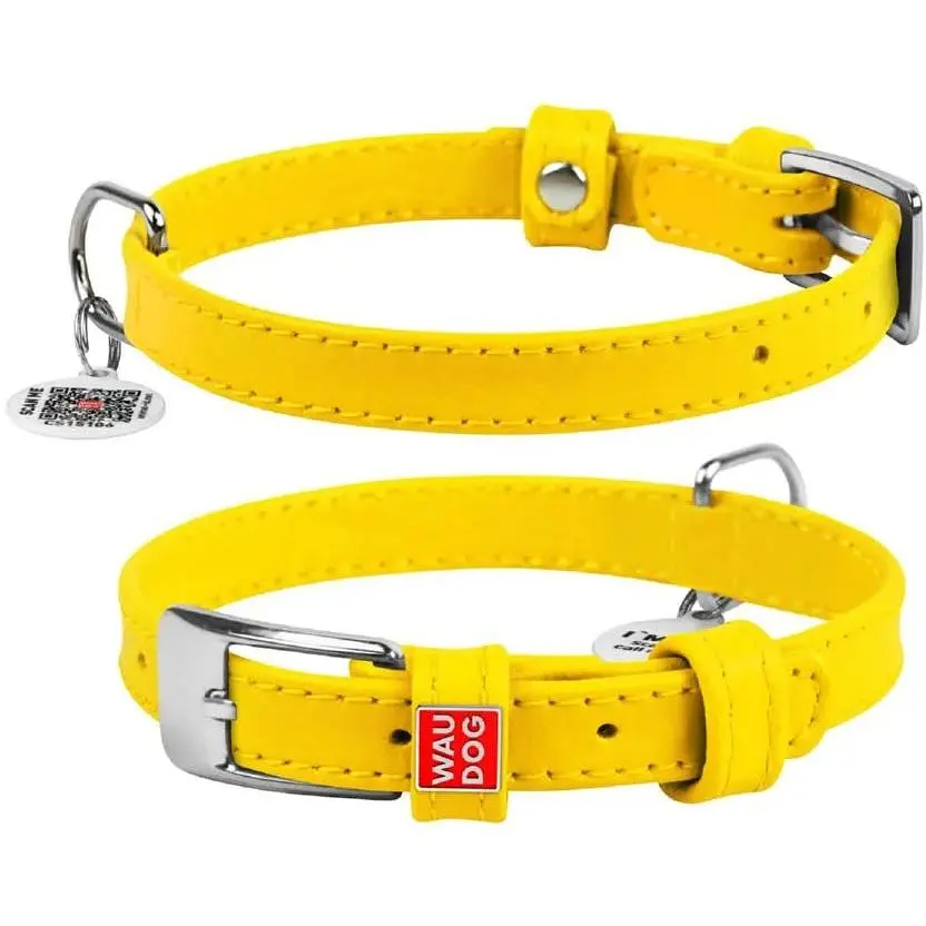 • Ошейник для собак Waudog Glamour кожаный с QR паспортом, без украшений, XS, Ш 15 мм, Дл 27-36 см (2032708000004) - миниатюра 1