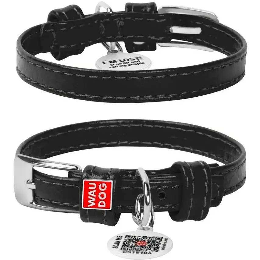 • Ошейник для собак Waudog Glamour кожаный с QR паспортом, без украшений, XS, Ш 9 мм, Дл 19-25 см (4820152560612) - миниатюра 1