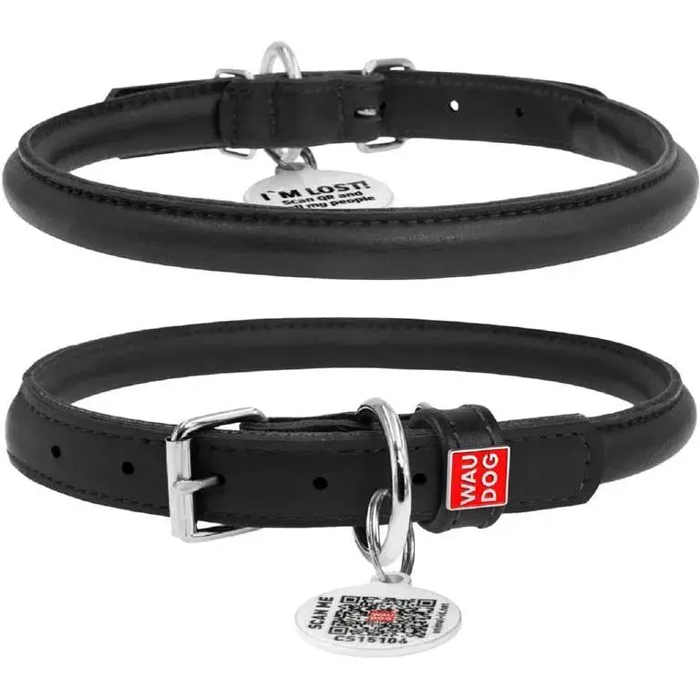 Ошейник для собак Waudog Glamour кожаный с QR паспортом, круглый, M, Д 10 мм, Дл 39-47 см - фото 1