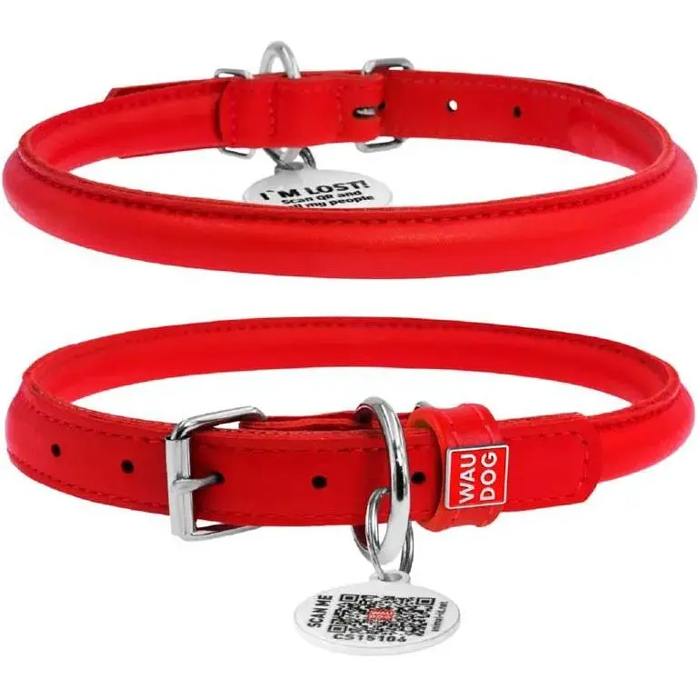 • Ошейник для собак Waudog Glamour кожаный с QR паспортом, круглый, M, Д 10 мм, Дл 39-47 см (4820152561411) - миниатюра 1