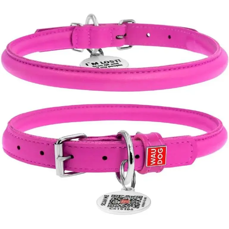 • Ошейник для собак Waudog Glamour кожаный с QR паспортом, круглый, M, Д 10 мм, Дл 39-47 см (4820152561442) - миниатюра 1
