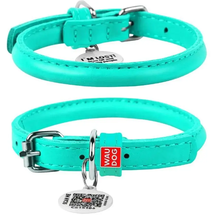 • Ошейник для собак Waudog Glamour кожаный с QR паспортом, круглый, XS, Д 8 мм, Дл 20-25 см - миниатюра 1