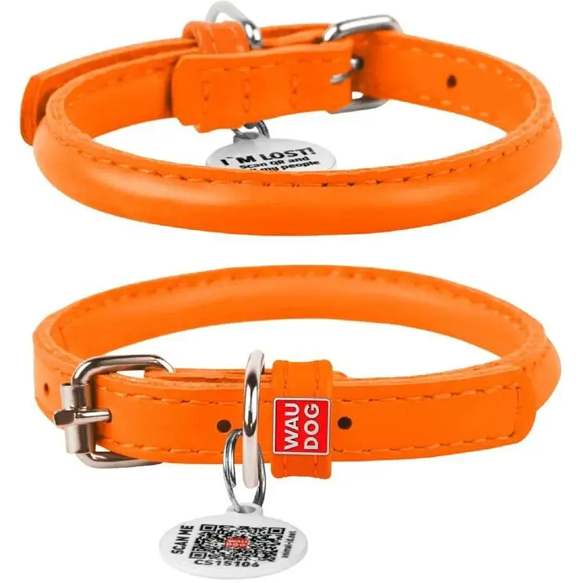 Ошейник для собак Waudog Glamour кожаный с QR паспортом, круглый, XS, Д 8 мм, Дл 20-25 см (4820152565228) - фото 1