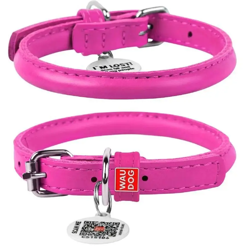 Ошейник для собак Waudog Glamour кожаный с QR паспортом, круглый, XS, Д 8 мм, Дл 20-25 см (4820152565242) - фото 1