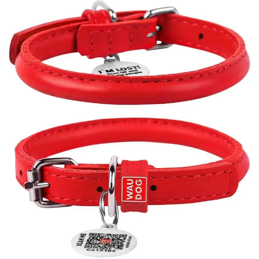 • Ошейник для собак Waudog Glamour кожаный с QR паспортом, круглый, XS, Д 8 мм, Дл 25-33 см (4820152565297) - миниатюра 1