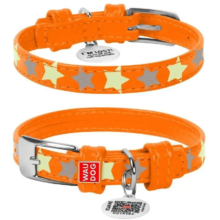 Ошейник для собак Waudog Glamour кожаный с QR паспортом, узор Звездочка, светящийся/светоотражающий, XS, Ш 15 мм, Дл 27-36 см (4823089301198) - фото 1