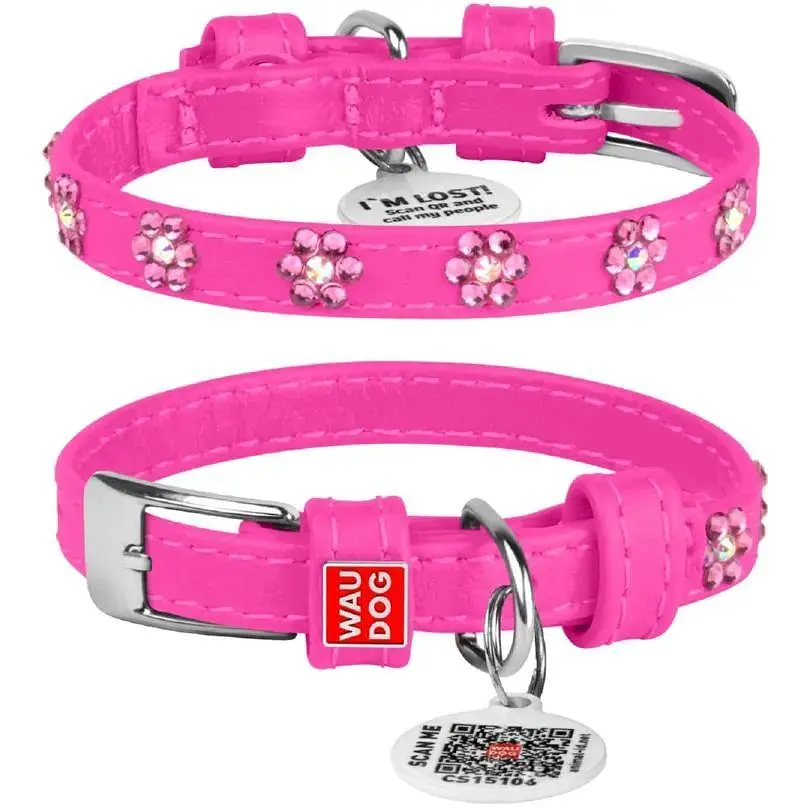 • Ошейник для собак Waudog Glamour кожаный с QR паспортом, с клеевыми стразами Цветочек, XS, Ш 9 мм, Дл 19-25 см (4820082498818) - миниатюра 1