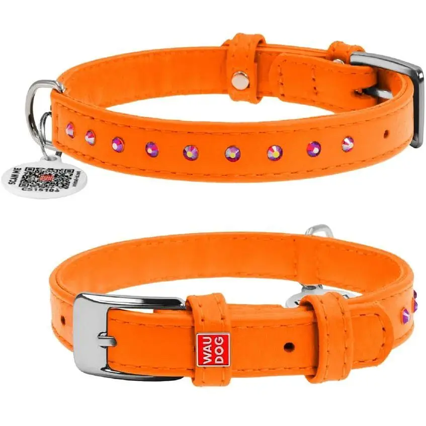 • Ошейник для собак Waudog Glamour кожаный с QR паспортом, с клеевыми стразами, XS, Ш 12 мм, Дл 21-29 см (4820082499082) - миниатюра 1