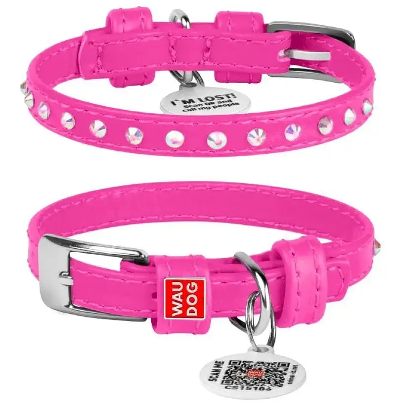 • Ошейник для собак Waudog Glamour кожаный с QR паспортом, с клеевыми стразами, XS, Ш 9 мм, Дл 19-25 см (4820082498962) - миниатюра 1