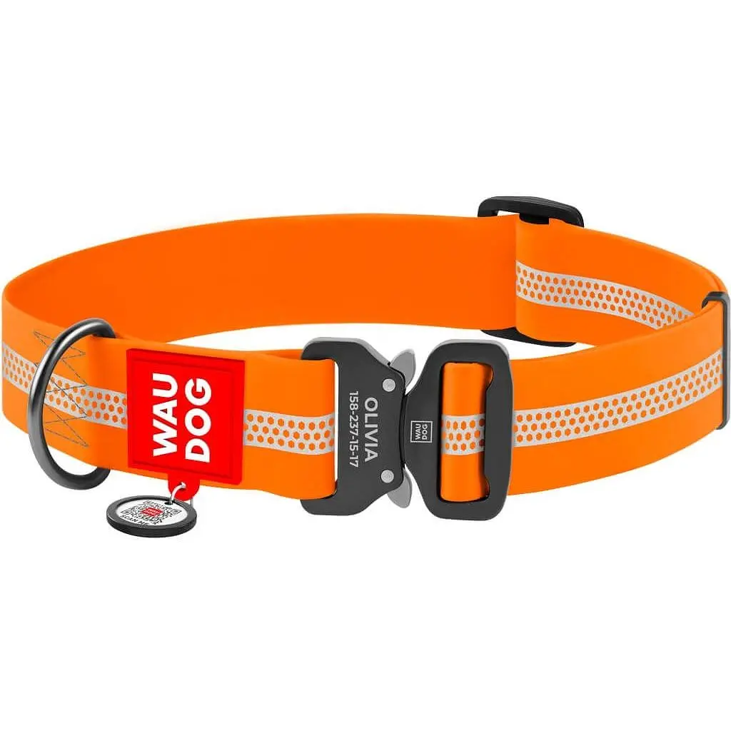 Ошейник для собак Waudog Waterproof, коллартекс, водостойкий, светоотражающий, с QR паспортом, металлическая пряжка-фастекс, XXL, 43-70х4 см, оранжевый