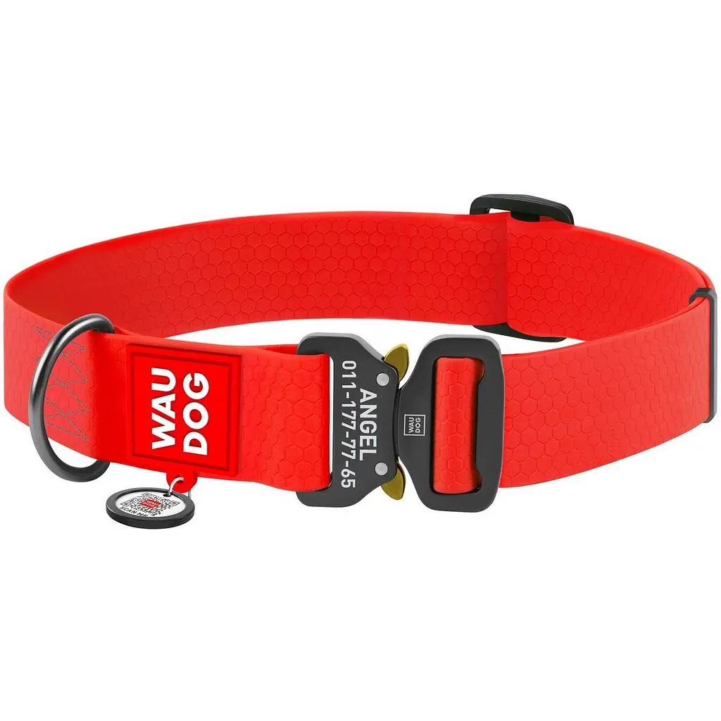 Ошейник для собак Waudog Waterproof, коллартекс, водостойкий, с QR паспортом, 43-70х4 см, красный - фото 1
