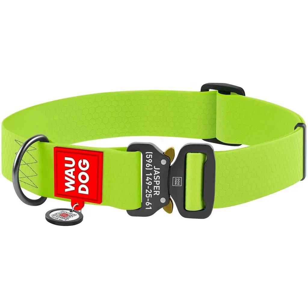 Ошейник для собак Waudog Waterproof, коллартекс, водостойкий, с QR паспортом, 43-70х4 см, салатовый