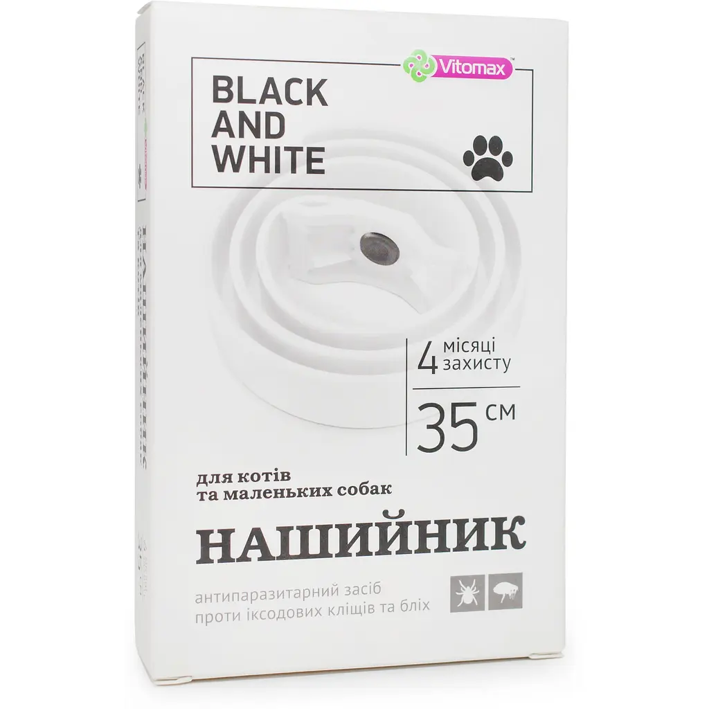 Ошейник Black&White представляет собой узкую полимерную ленту с петлями для фиксации. Предназначен для уничтожения эктопаразитов: блох, клещей, вшей, волосоедов и москитов. Подходит для кошек и мелких пород собак.