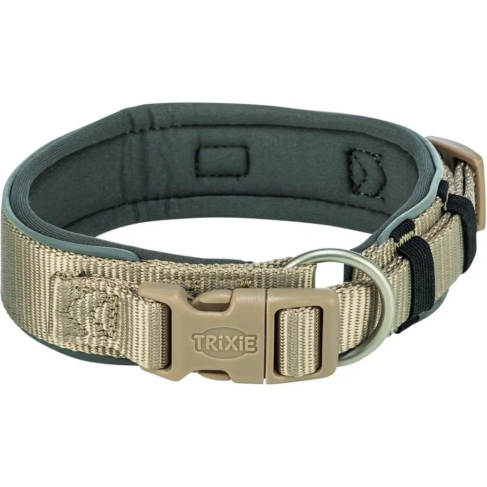Ошейник Trixie Premium экстраширокий - это высококачественный прочный аксессуар, который обеспечит комфорт и безопасность вашей собаке во время прогулок. Неопреновая подкладка делает его мягким и удобным для ношения. Ошейник имеет пряжку с защитой от натяжения, которая предотвращает случайное расстегивание. Светоотражающие элементы ошейника помогают питомцу стать заметным в темноте для водителей. Ошейник имеет петлю для крепления жетона или мигалки, а также возможность крепления трекера на узкой застежке.
