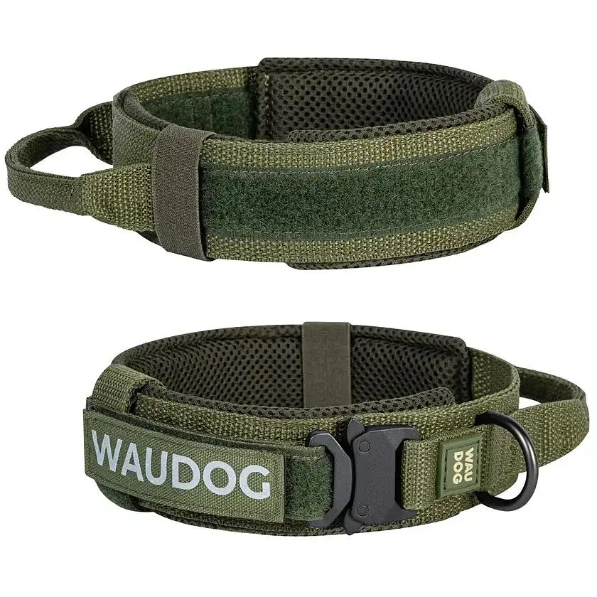 Амуниция WAUDOG PRO – отличное решение для комфортных тренировок и активного отдыха! Тактический ошейник с ручкой изготовлен из качественного и прочного материала. Он выдерживает большие нагрузки и идеально подходит для средних и больших пород собак. Внутренняя сторона обшита мягкой дышащей сеткой, что предотвращает натирку и обеспечивает максимальный комфорт даже во время длительного ношения. Съемный светоотражающий патч повышает заметность питомца в темное время суток.