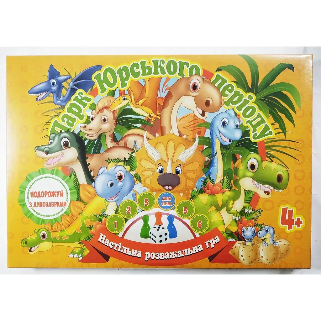 Парк Юрского периода – настольная развлекательная игра для детей от 4 лет и старше. Она представляет собой классическую бродилку с игровым полем, кубиком и фишками. Победителем станет тот, кто первым придет к финишу и поможет маме-динозаврисе найти пропавшие яйца. Перед тем, как совершить очередной ход, игрок должен прикоснуться к любому нарисованному динозавру. Если он забудет выполнить это условие, то обязан переместить фишку на три шага назад или выполнить простое желание предыдущего участника. Эта настолька – отличный повод провести вместе семейный вечер или дружеские посиделки. Желаем вам веселой игры и увлекательного путешествия в доисторическое прошлое Земли!