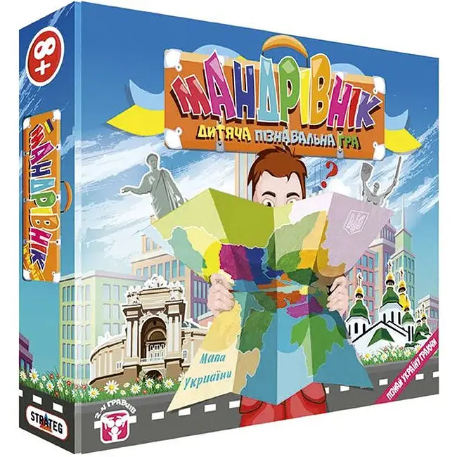 Совместить игру с познанием и обучением, развлечь малыша поможет настольная игра с элементами экономики Путешественник. Участников ждет увлекательное путешествие по Украине, знакомство с ее достопримечательностями и все это - в доступной игровой форме. Игрокам придется преодолеть препятствия и выполнить разные задачи, совершая поочередно ходы, в соответствии с правилами и очками, выпавшими на кубике. Добавит необходимость отвечать на вопросы мини-викторины, что позволит проявить свои знания или узнать интересные факты. Присутствует и экономическая составляющая – возможность получать и тратить специальную игровую валюту – стратеги разного номинала. Игрушечные купюры украшены изображениями памяток Украины. Предварительно можно ознакомиться с информацией викторины, ведь в процессе необходимо будет отвечать на вопросы. Побеждает тот, кто первым придет в финиш и получит максимальное количество игровой валюты. Играть можно компанией от 2 до 4 человек, совершая поочередно ходы, в соответствии с правилами, преодолевая препятствия и выполняя задания. В комплекте: игровое поле 42х48 см, представляющее собой карту Украины с разными задачами, кубик и 4 фишки. Правила просты, но игра захватит участников с первого хода!