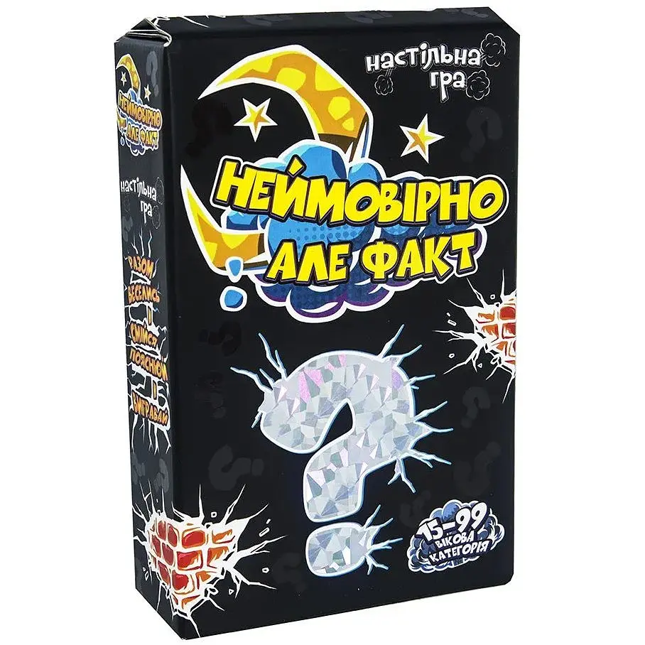 Настольная игра Strateg Невероятно но факт на украинском языке заинтересует любого. Ваша основная задача – объяснять слова. Но главное условие в том, что объясняя нельзя употреблять однокоренные слова. Так же в игре есть бонусные карты, содержащие в себе дополнительные условия, которые следует соблюдать во время своего хода. Соблюдение условий принесет вам дополнительные баллы, но не стоит расслабляться, ведь штрафы тоже предусмотрены! Слова на карточках совершенно разные и разбиты на три уровня сложности. Могут быть и супергерои, и актеры, и предметы обихода. Победит в игре тот, кто заработает больше баллов. С настольной игрой "Невероятно, но факт" вам гарантировано прекрасное настроение и положительные эмоции. Рекомендуемый возраст: от 15 лет. Количество игроков: 4-16. Комплектация игры: 110 картонных карточек, песочные часы бумажная инструкция. Размер упаковки: 18,7х12,3х4,5 см.