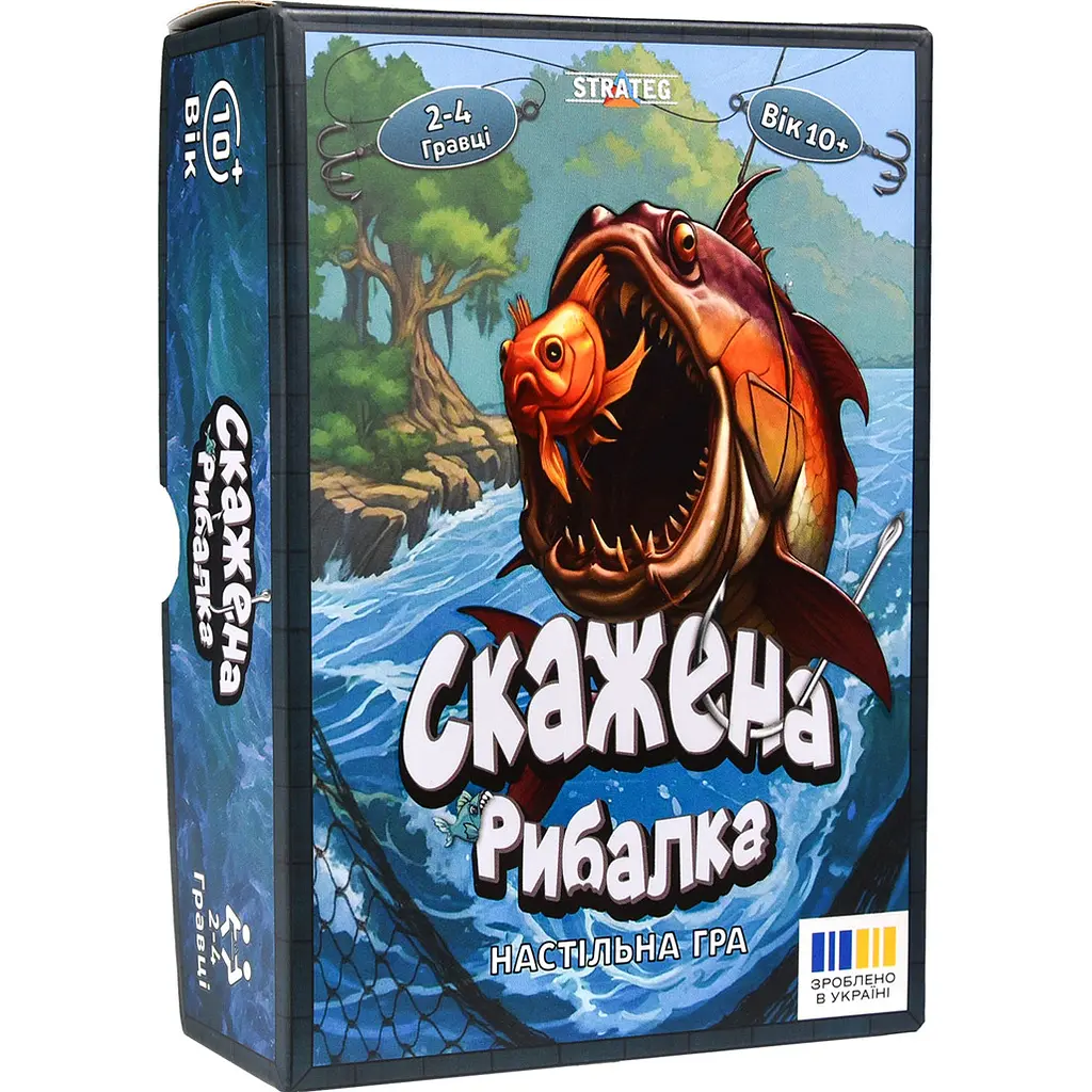 Комплектация игры включает 60 карт рыбы, 40 карт наживки, 58 жетонов, 4 карты-подсказки, жетон главного игрока и подробную инструкцию. Набор рассчитан на компанию от 2-4 игроков от 10 лет и поставляется в яркой коробке, которую удобно брать с собой на отдых. Strateg Бешеная рыбалка станет отличным дополнением вашей коллекции настольных игр, даря кучу эмоций и азарта во время каждой партии.
