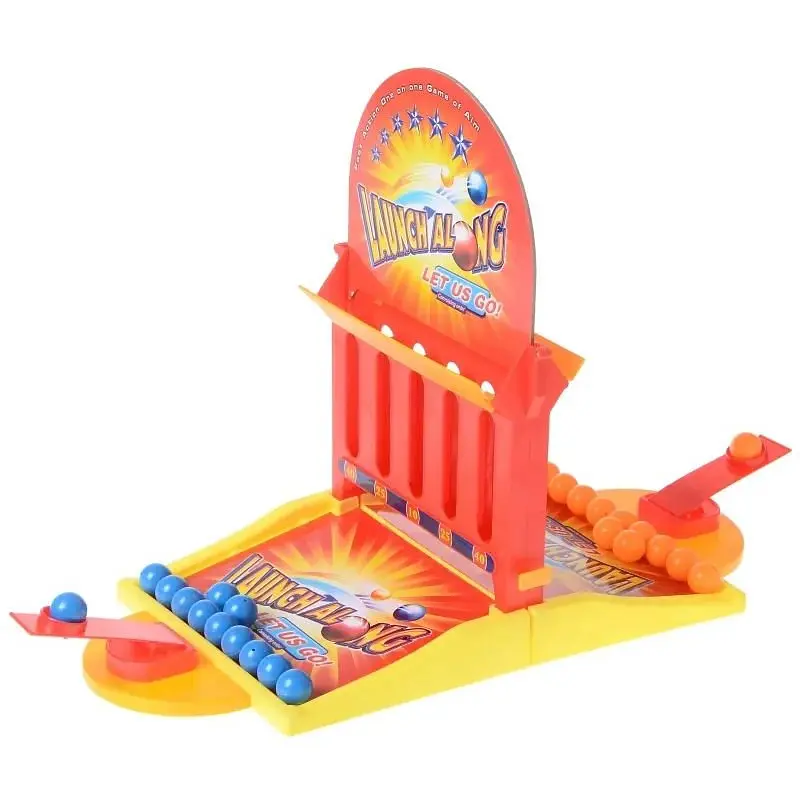 Настольная игра для двух человек. Цель игры набрать больше очков, чем у соперника, попадая шариком в одну из пяти целей. Стоимость попадания в разные цели разная. Шарик бросается с помощью специальной катапульты. У каждого участника шарики разных цветов, чтобы не возникло путаницы при подсчете очков. Такие соревнования развивают не только ловкость и внимательность, но и математические способности, ведь очень важно правильно сосчитать набранные очки. Игра компактно состоит и изготовлена из безопасных для здоровья ребенка материалов. Настольные игры прекрасный подарок для любого ребенка.