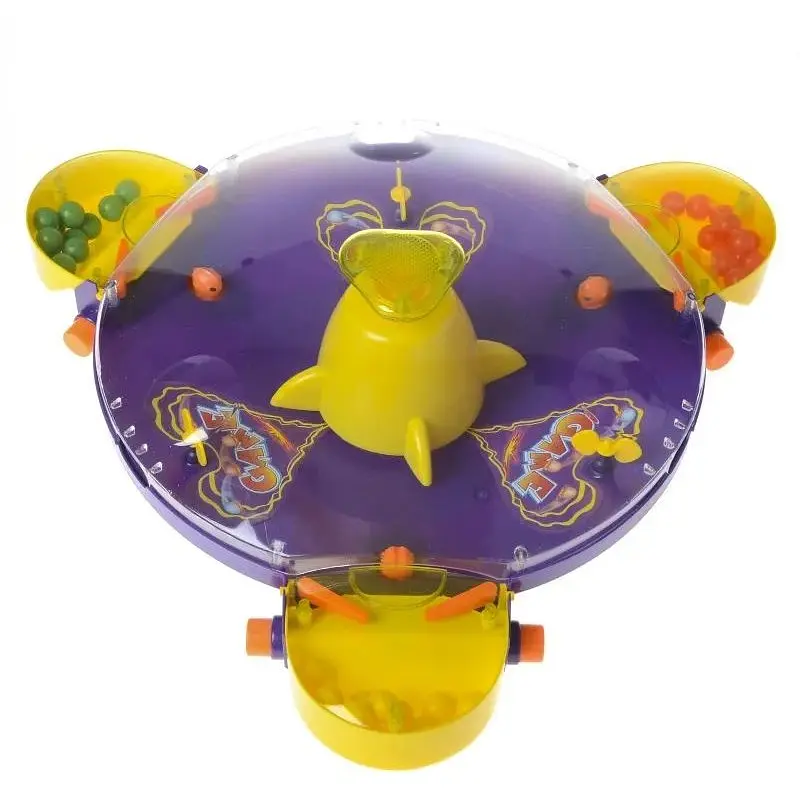 Любая настольная игра – это отличный повод собраться всей семьей за веселым и положительным занятием. В набор входит основа для игры, разные шарики, фишки. Яркая цветовая гамма настольной игры привлечет внимание вашей крохи. Для начала игры необходимо включить кнопку включения и выключения, а затем зарядить боковые кабинки шариками. Но для того чтобы шарики начали кружить, нужно нажать на рычаг, расположенный посередине поля. У каждой кабинки есть красные кнопочки, при нажатии которых вы поможете предотвратить попадание шариков из поля в боковые кабинки. Нажимая на этот же рычаг, шарики начинают свое движение по всему кругу, а также звучит музыка, игрушка подсвечивается. Для работы этой игрушки необходимы батарейки. В такую игру могут играть несколько человек. Если кого-то одного из игроков нет, то можно запросто приподнять боковую кабинку. Поэтому собирайтесь дружной семьей и играйте в эту прекрасную игру. Такая игра способствует развитию логического и тактического мышления, мелкой моторики рук, сообразительности и внимательности зрения. Игра изготовлена из экологически чистого пластика, безвредного для здоровья ребенка. Рекомендуется для игры от 4 лет. В комплект входят: основа для игры; шарики; фишки.