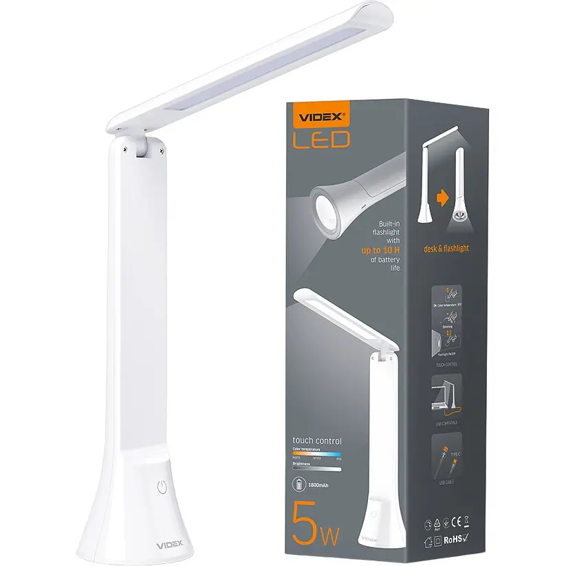 Настольная лампа Videx LED TF11W 5W 3000-5500K отлично подойдет для различного рода задач, например, для освещения рабочей зоны стола, клавиатуры, чтения, письма, шитья, маникюра. Лампа способна работать без подключения к бытовой сети питания за счет встроенной аккумуляторной батареи (1800 мАч). Небольшие габариты позволяют размещать лампу не занимая лишнего места. Рабочий угол наклона позволяет удобно управлять лампой и направлять свет согласно потребности. Благодаря встроенному аккумулятору может работать до 6 часов в автономном режиме.