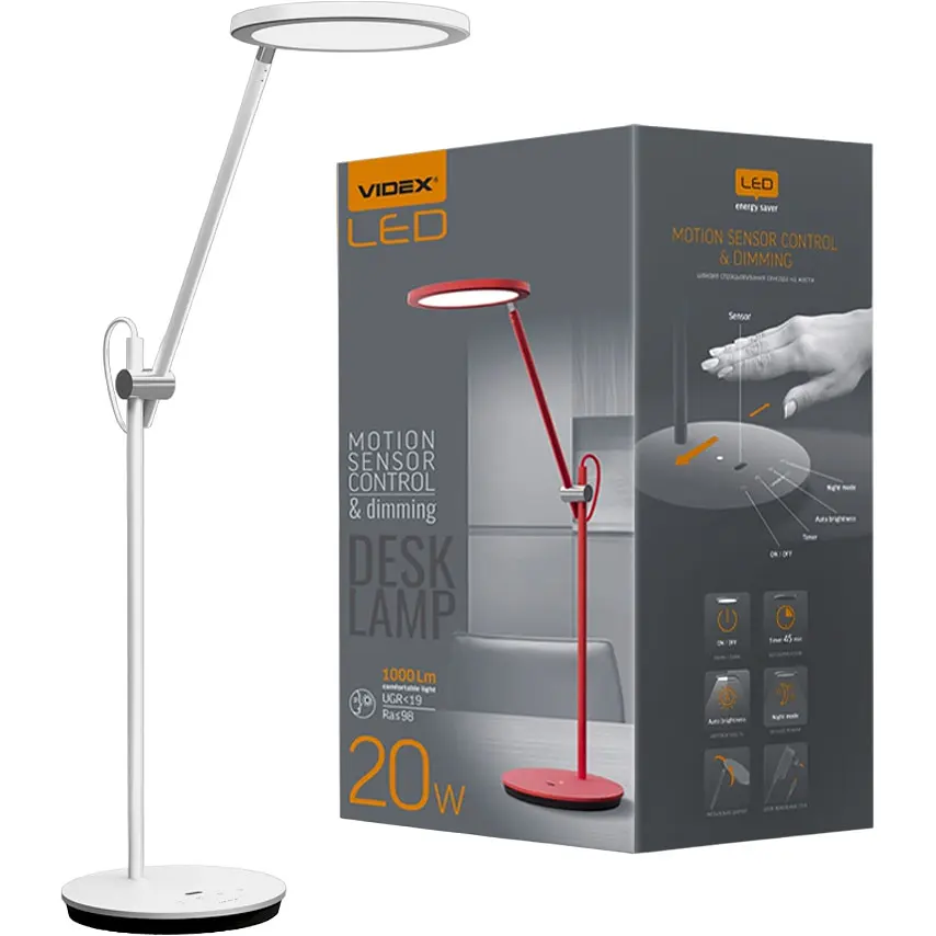 Настольная лампа Videx LED VL-TF15W 20W 4100K с URG<19 и сенсорным управлением предназначена для обеспечения комфортных и благоприятных условий в вашем помещении. В настольной лампе, невзирая на традиционные характеристики, реализованы новые современные технологии. Благодаря уникальной способности настраивать освещение это устройство станет незаменимым помощником для людей, много времени проводящих за рабочим столом.