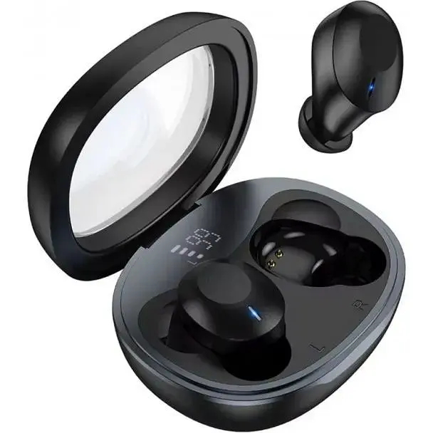 Прозрачная капсула, в которой заряжаются наушники, выглядит необычно и фешенебельно. LED дисплей сообщает об уровне заряда зарядного кейса. В самом кейсе имеется индикатор заряда правого и левого наушника.