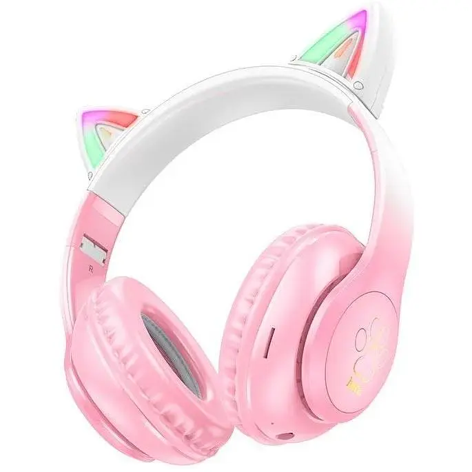 Наушники Hoco Cat ears BT headphones W42 - беспроводная гарнитура для прослушивания музыки, голосовых вызовов, видеоконференций и выполнения других задач. Соединение со смартфонами и другими устройствами обеспечивается с помощью технологии Bluetooth 5.3, радиус действия составляет до 10 метров. Однако при необходимости можно производить подключение наушников через разъем AUX 3,5 мм (mini-jack). Это позволяет продолжить использование минигарнитуры даже при севшем аккумуляторе.