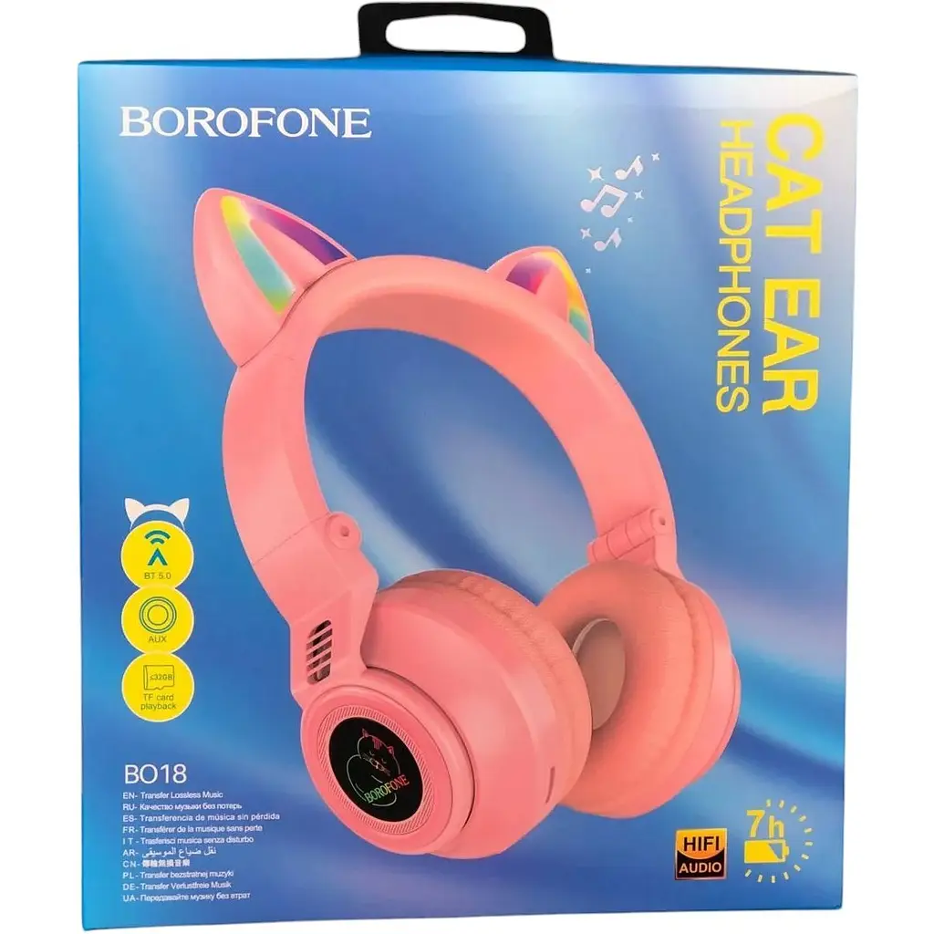 Поступление новых моделей светящихся LED Bluetooth наушников Borofone BO18 Cat ear BT Pink