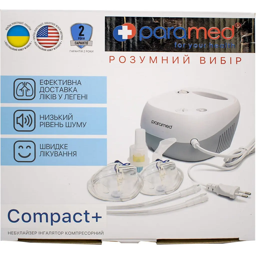 Компрессорный ингалятор Paramed Compact+ - это удобный небулайзер для домашней терапии различных болезней, связанных с дыхательной системой (хронические воспалительные процессы, астмы, острые респираторные заболевания, риниты, аллергии и другие).